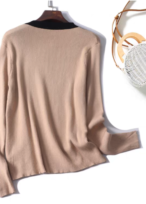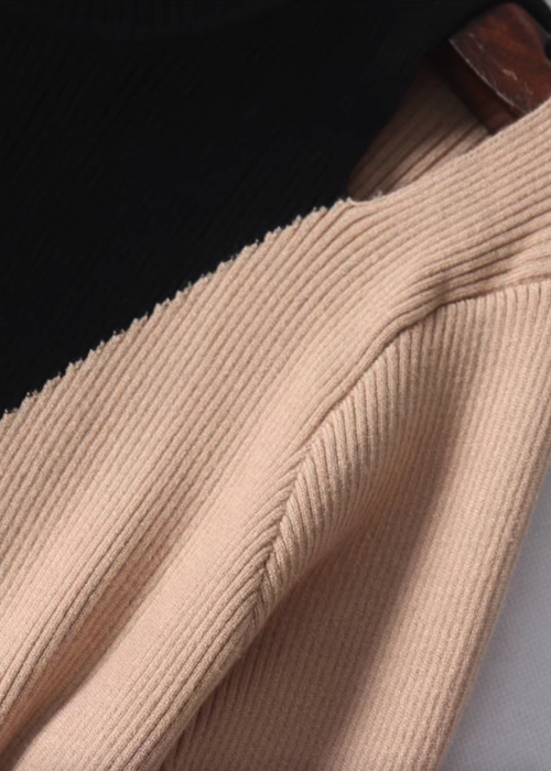 Color Block Mock Neck Fitted Knit Top